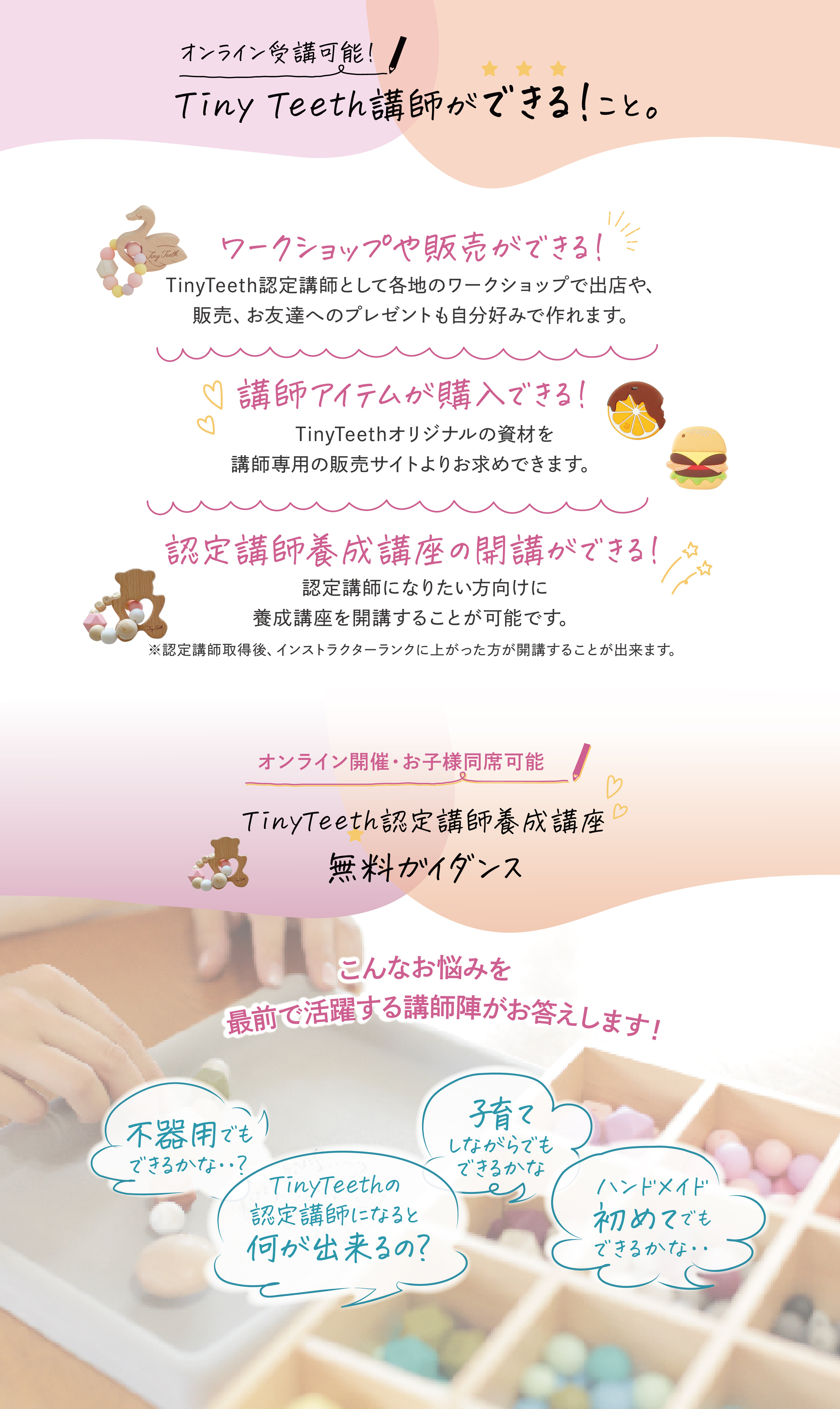 そして、何よりTinyTeeth認定講師になると購入出来るアイテムやイベントが盛りだくさんです♪